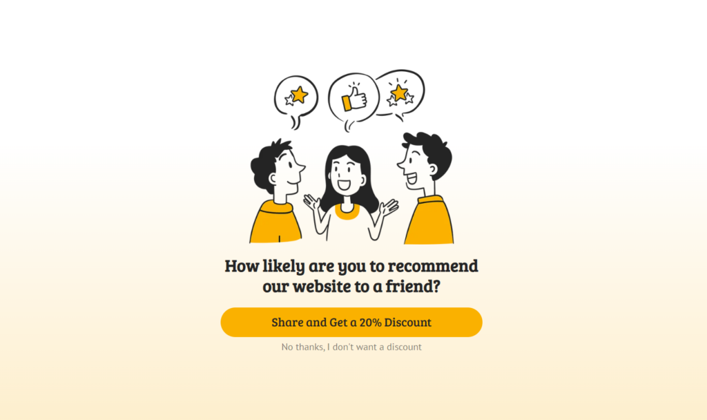 If you’re offering a free trial for a SaaS product or membership-type product, the fullscreen survey can help gather crucial feedback just before the trial ends. This can give you insights into whether the user intends to convert to a paying customer or why they might not.